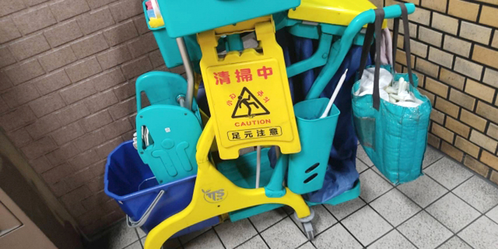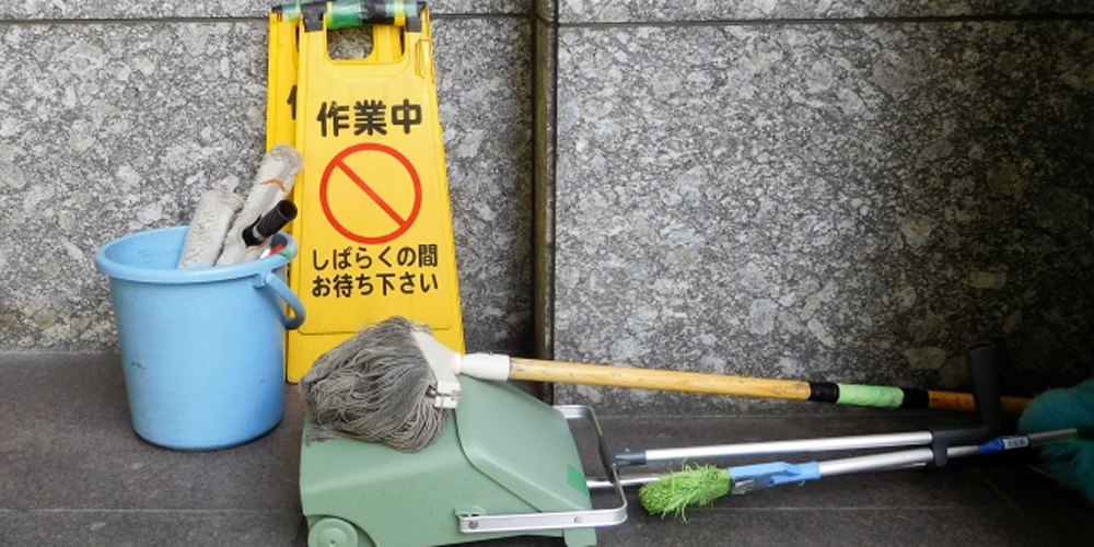 ほうき、モップを使用しての