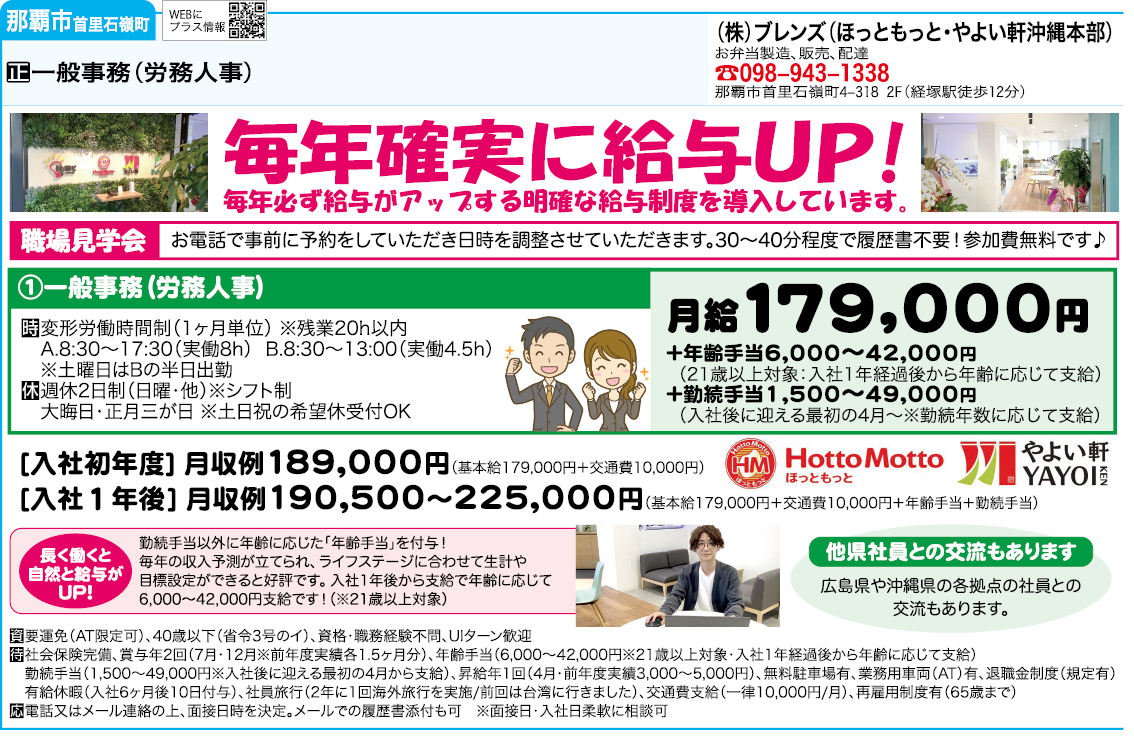 | 電話 | 電話/098-943-1338 ※ご連絡の際は「しゅふぴたを見て応募しました」と伝えるとスムーズです。 |