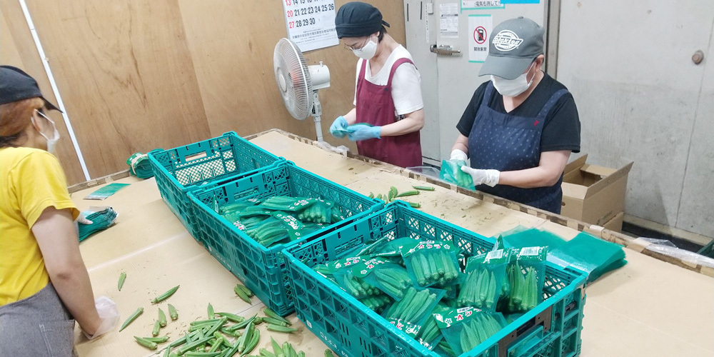 青果商品のパック詰め作業など。