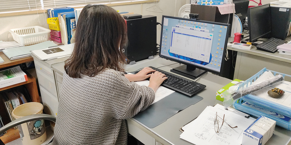 入社後は、先輩のサポートとして図面のチェック・修正や簡単なデータ入力などから始めます。慣れてきたら、CADを使ったサッシの設計や施工管理担当との打合せにも携わります。