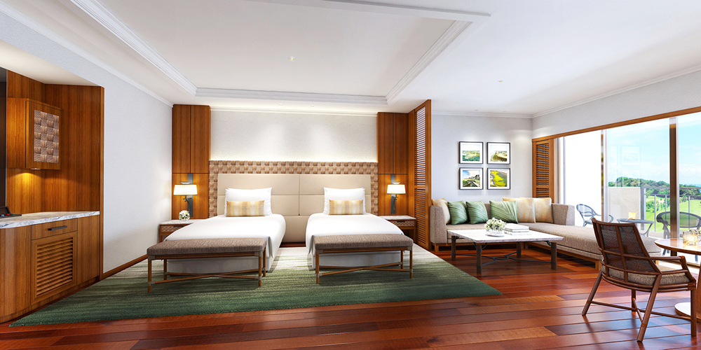 リゾートホテルの客室清掃。