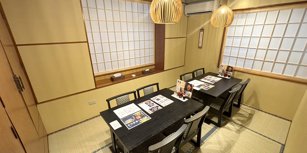 店内はすべてテーブル席で、個室も完備。