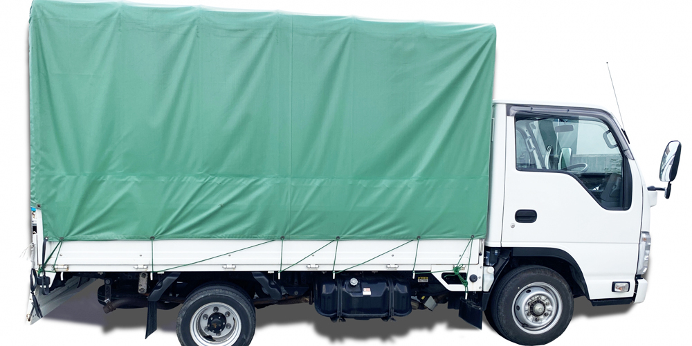 | 未経験でも大丈夫! | 横開きの幌付きトラックを使用! |